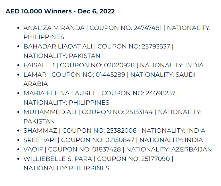 AED 10,000 Winners-Oct 24, 2022