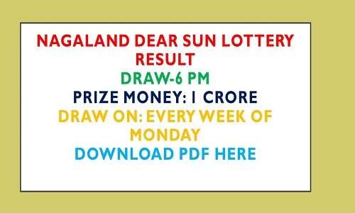 Nagaland Dear Sun Lottery Result 2023: Dear Sun Morning Monday Weekly Lottery Draw-110 Will be Conduct Today. Directorate of Nagaland State Lotteries Organizing the Weekly Draws. The Price of the Each Lottery Ticker is 6/-Rupees. If You Have Lottery Ticket, Can Check the Lucky Numbers Here. 1st Prize Winner Will Get 1 Crore Prize Money. The Director Nagaland State Lotteries Issue the List of Winners. Nagaland State Lottery Results Morning Will be Release After 4 PM (02-01-2023).