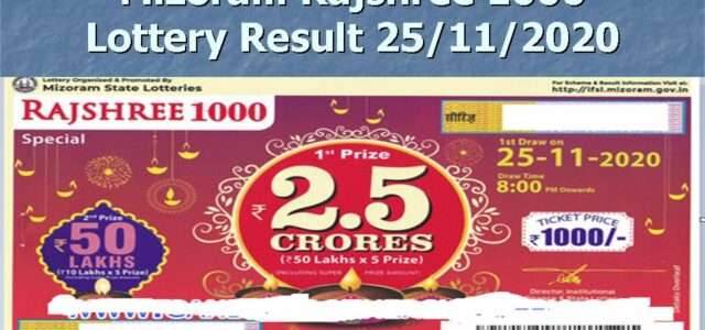 Mizoram Rajshree 1000 Lottery Result 25/11/2020: CLICK HERE