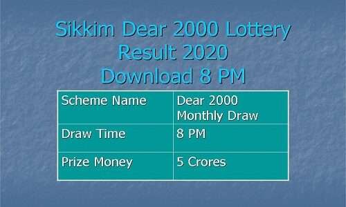 Sikkim State Dear 2000 Monthly Draw Result 2020 Available Online