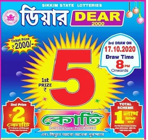 We Wish to All Lottery Players and Hope today is the Good Day and Hope You Will Win this Lottery. Lets Ready to Talk About Today’s Sikkim Dear 2000 Monthly Lottery Draw. As Per the Officials Updates the Draw Will be Host On 17.10.2020. Huge No of Lottery Tickets Were Sold By the Dealers. After that Every One Want to Know Details of Conducting Of Draw. Peoples Don’t Worry About Results. Because We Will Inform and Update the Links of Sikkim Dear 2000 Monthly Lottery Results 2020. Stay Connect With Us We Will Provided You PDF Of Sikkim State Dear 2000 Monthly Lottery Result 2020.